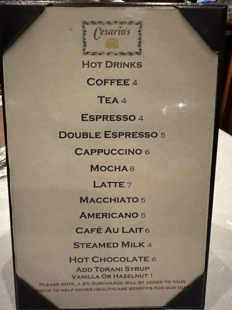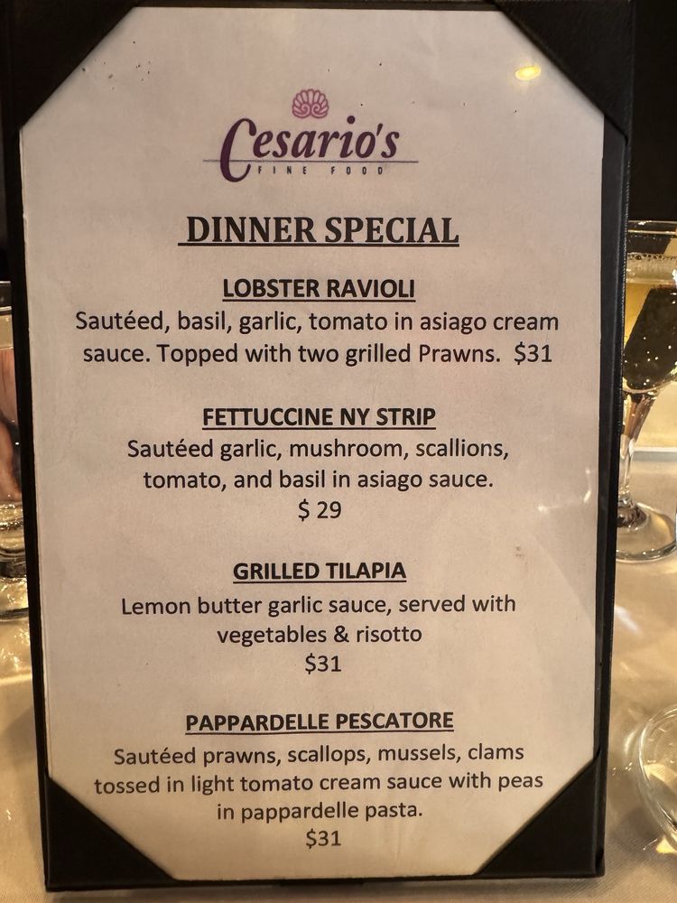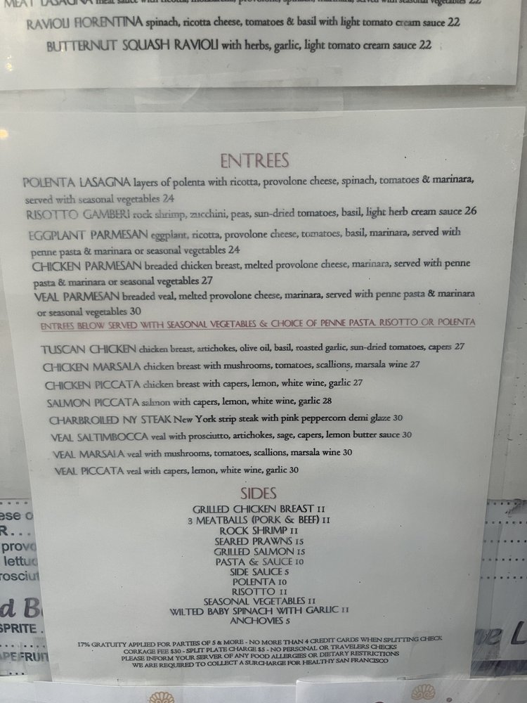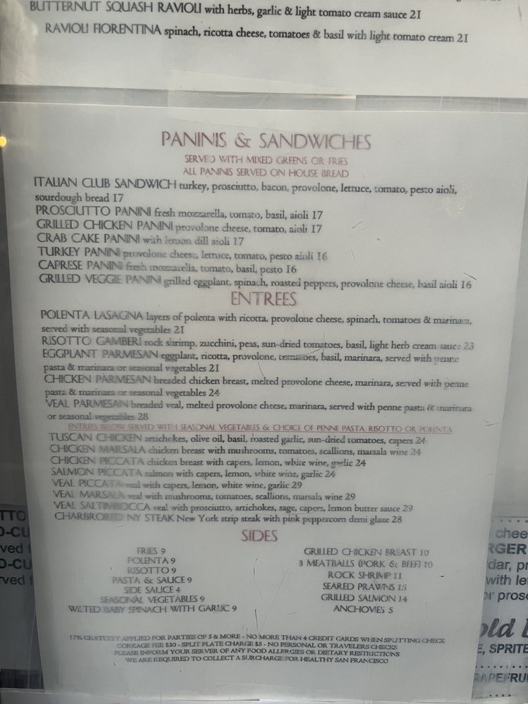 Introducing Cesario’s, located in San Francisco, a cozy Italian restaurant offering a variety of lunch options. From Carpaccio and Calamari Fritti appetizers to delicious pasta dishes like Fettuccine and Spaghetti with Meatballs, Cesario’s menu is sure to satisfy your cravings. For those looking for a lighter option, the Paninis and Sandwiches, such as the Italian Club Sandwich and Prosciutto Panini, are also available. Customers rave about the authentic flavors, good selection of wine, and attentive service at Cesario’s. Whether you're in the mood for a classic Italian dish or a savory sandwich, Cesario’s has something for everyone. Don't miss out on this hidden gem in the heart of San Francisco.